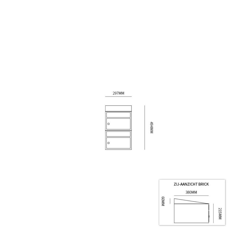 Per brievenbus is de Brick met zijn compacte maat van 295x215x380 (bxhxd) een perfect in te zetten brievenbus voor aan de wand, in de wand en op statief.