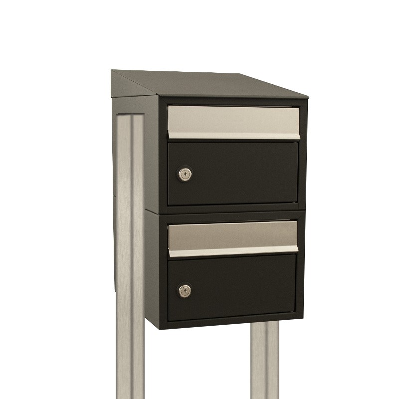 Productinformatie "Brievenbus Brick 2-hoog met dak op statief zwart"