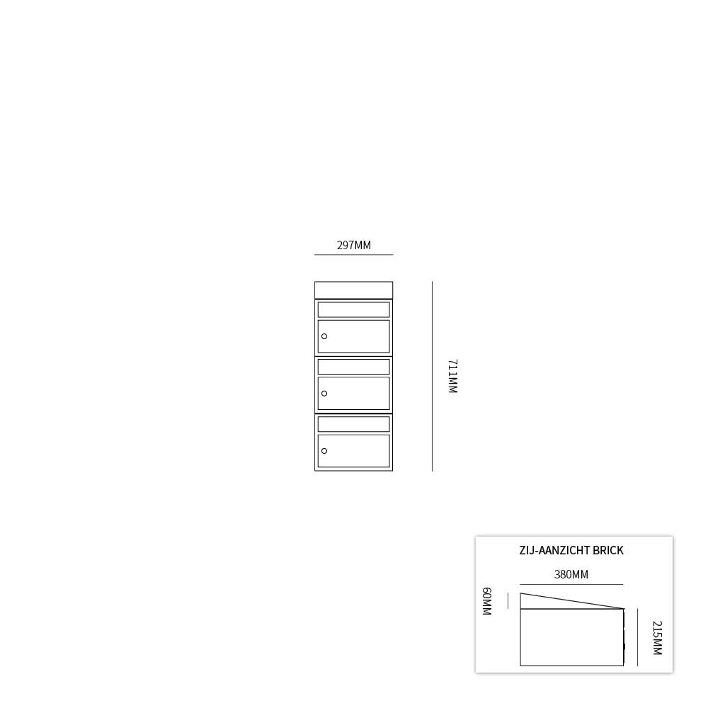 Per brievenbus is de Brick met zijn compacte maat van 295x215x380 (bxhxd) een perfect in te zetten brievenbus voor aan de wand, in de wand en op statief.