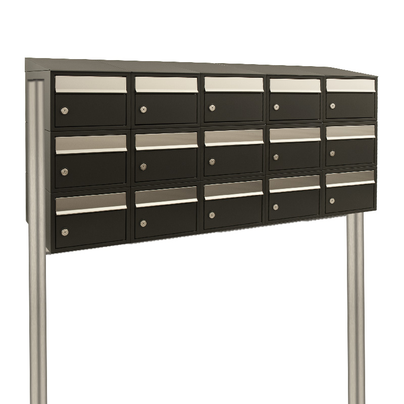 Productinformatie "Brievenbus Brick 5-breed, 3-hoog met dak op statief zwart"