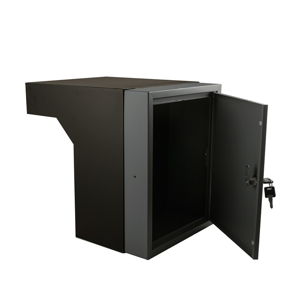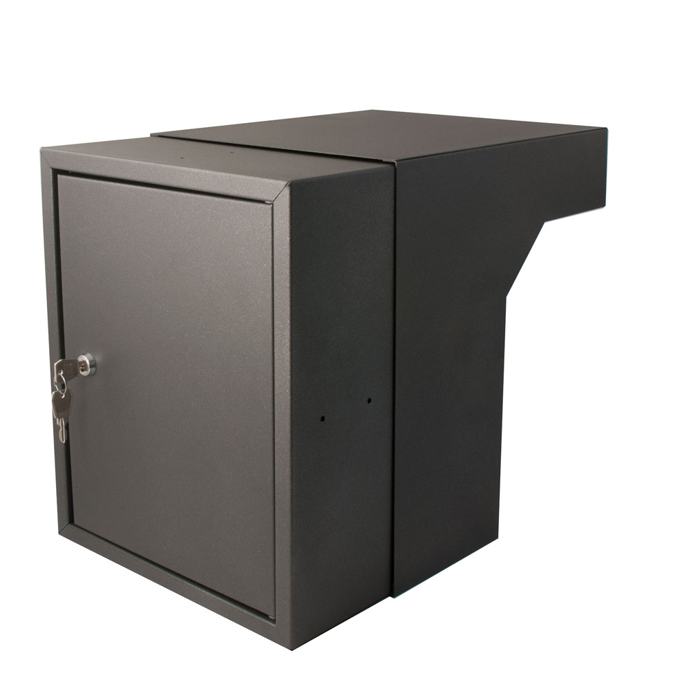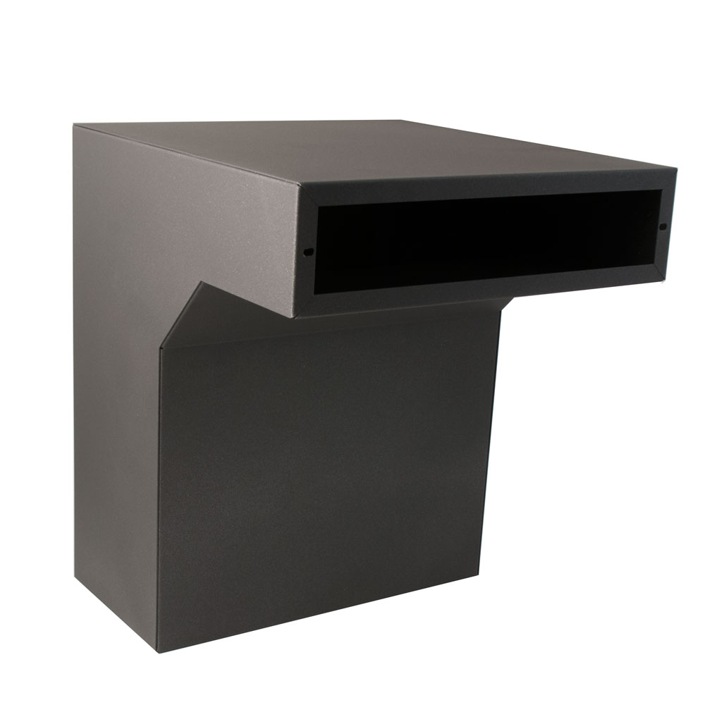 Flexibele Post Inbouw - Doorvoerkast Stoer! Antraciet Grijs 400-550mm. is de oplossing voor post doorvoer in betonnen, houten of stalen kolommen en muren. Dit Komt doordat de doorvoerkast uit 2 delen bestaat en zich aan de draairichting aanpast en de diepte 400-550mm.
