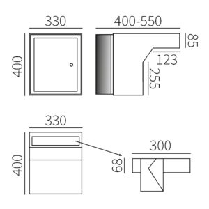Flexibele Post Inbouw - Doorvoerkast Stoer! RVS 350-500mm. is de oplossing voor post doorvoer in betonnen, houten of stalen kolommen en muren. Dit Komt doordat de doorvoerkast uit 2 delen bestaat en zich aan de draairichting aanpast en de diepte 350-500mm.