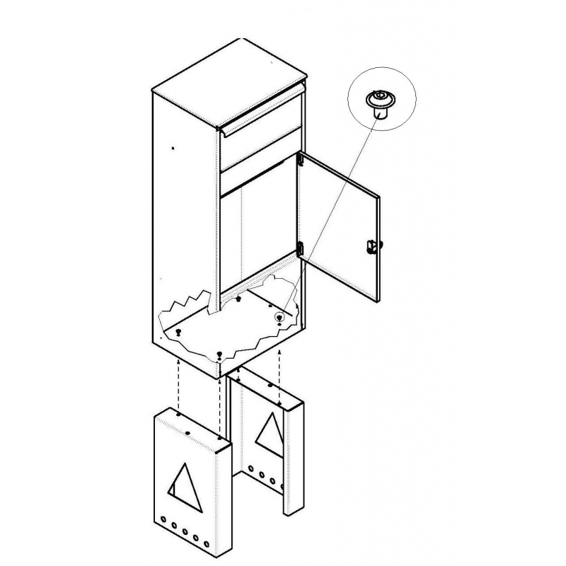 Montageset is gemaakt van gegalvanisserd staal. Wordt als een soort kubus in de grond gegraven waarop op u de pakket brievenbus kunt monteren.